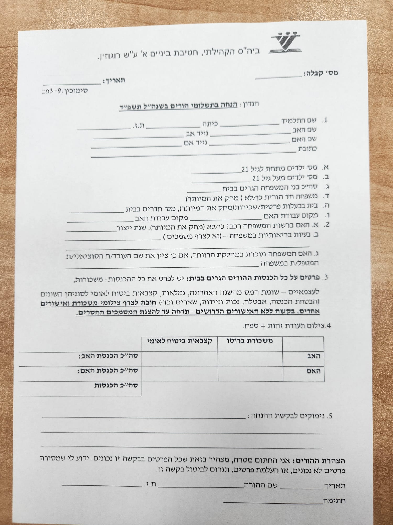 הסכמה להשתתפות בעיתון ובאתר בית הספר
